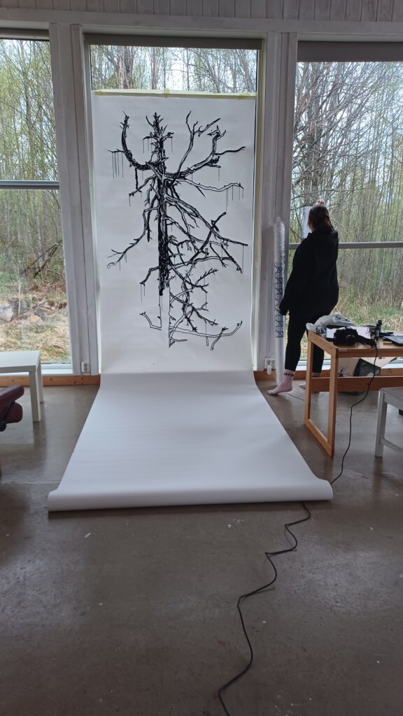 “Knoklene blir til trær / Los huesos se transforman en árboles” presents a series of photographs collected during an artistic residency in Atelier Austmarka divided in 3 periods: fall, spring and winter. Working with photography, the artist explores how memories and perception are affected by mental illness, reflecting on the duality of the forest as a place to find peace, in contrast with facing loneliness and vulnerability. This project portrays the unsettling feeling of walking through a silent vast forest, while “its presence” stalks.